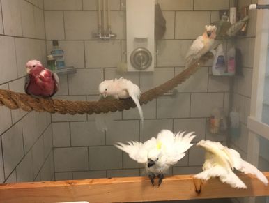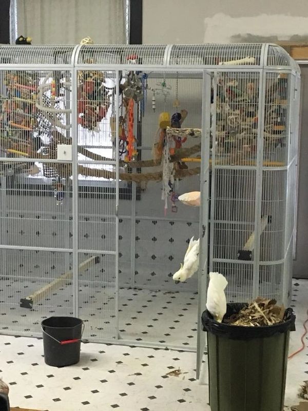 With free flighted birds who aren't afraid of exploring. This is always an ongoing battle! From Deci chewing a hole in the ceiling tiles, to Carat breaking the welds on his stainless steel cage we're always replacing something.